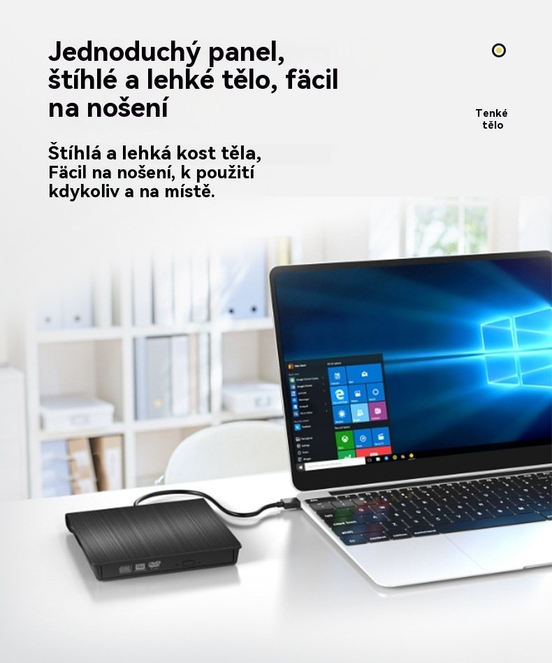 📢📢50% sleva 💿💻 Externí čtečka CD/DVD – Plug & Play, přenosná a kompatibilní s Mac/Windows