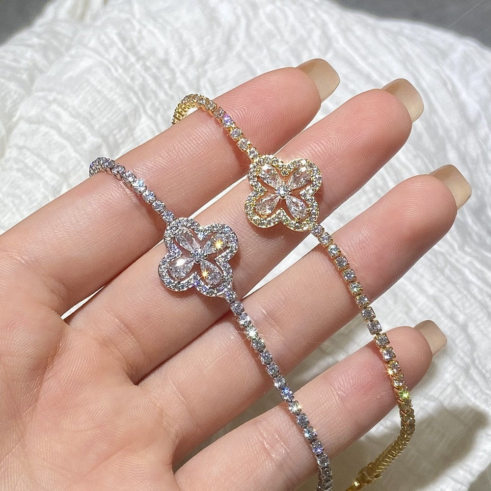 ✨【Kup 1, otrzymaj 1 gratis】Super błyszcząca bransoletka z czterolistną koniczyną, luksusowa i wyjątkowa, wykwintna bransoletka z pełnym diamentem