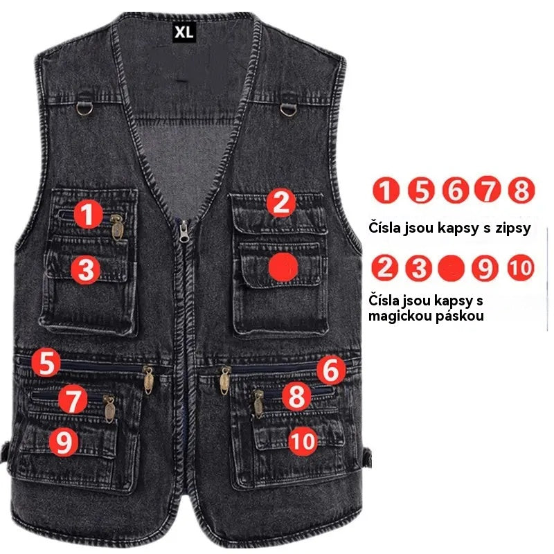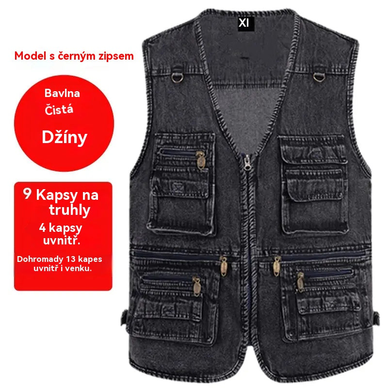 🔥 Nová kolekce -50% 🔥【XL-7XL】Nová pánská džínová vesta s více kapsami - Odolné, prodyšné a pohodlné
