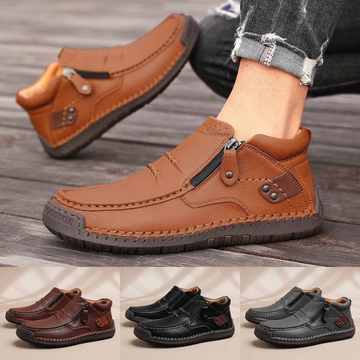 👞【38-48】Muške ručno rađene kožne nazubljene vozačke cipele - široki prsti, potpora za svod stopala
