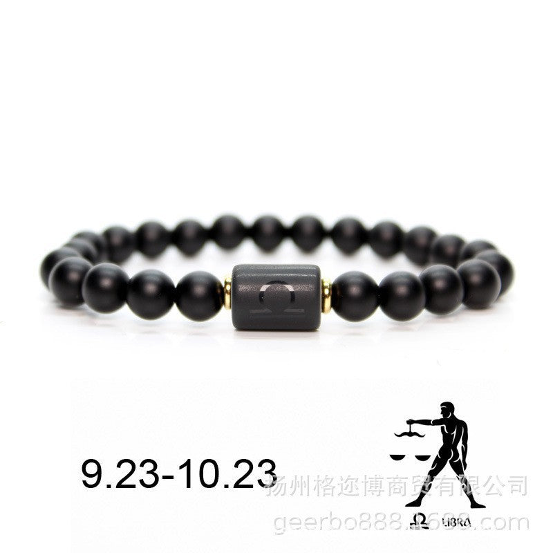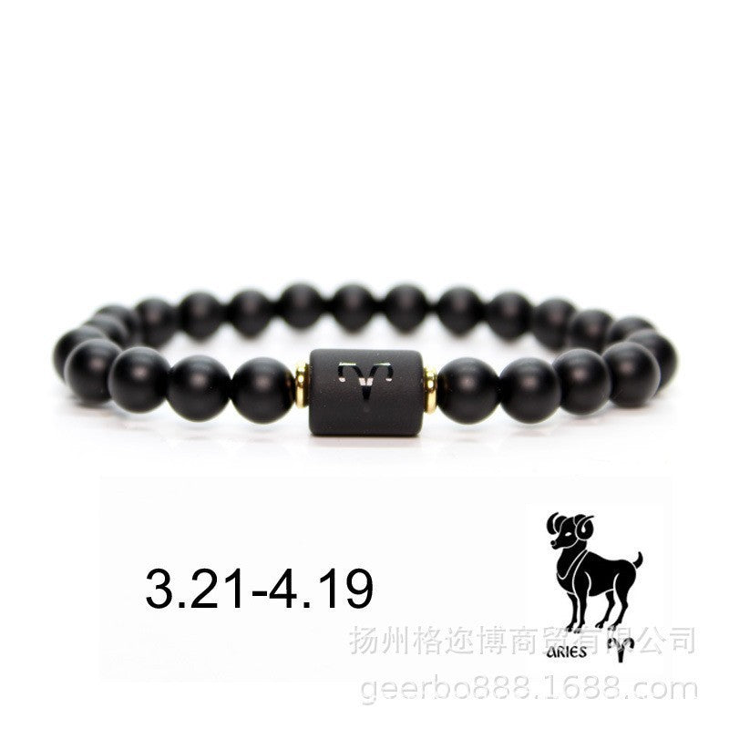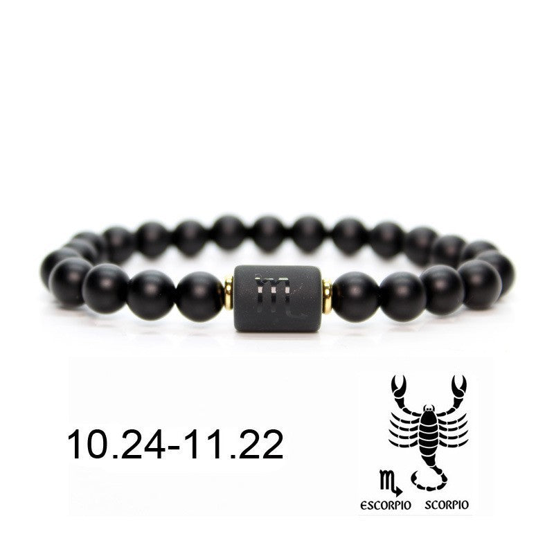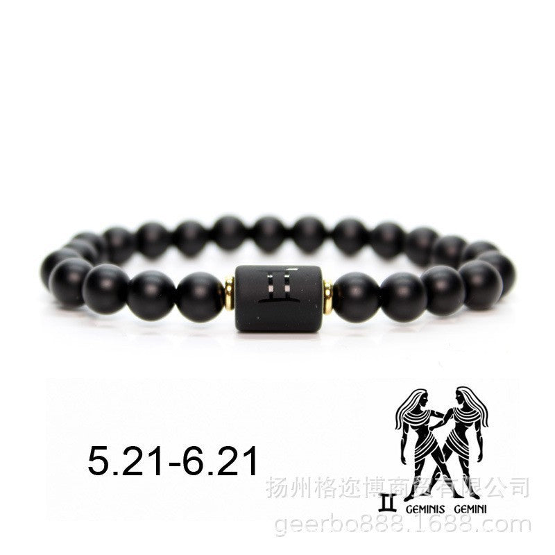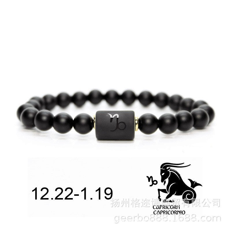 🔥【Kupite 1, dobijte 1 gratis】💖Ručno izrađena narukvica za par s dvanaest horoskopskih znakova od matiranog crnog ahata