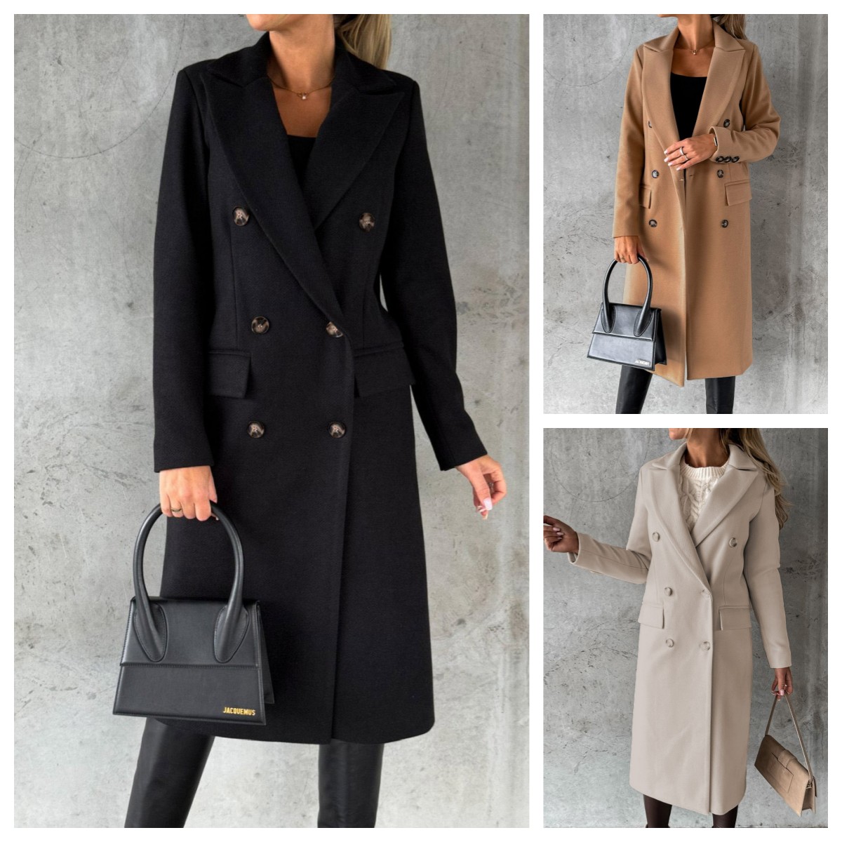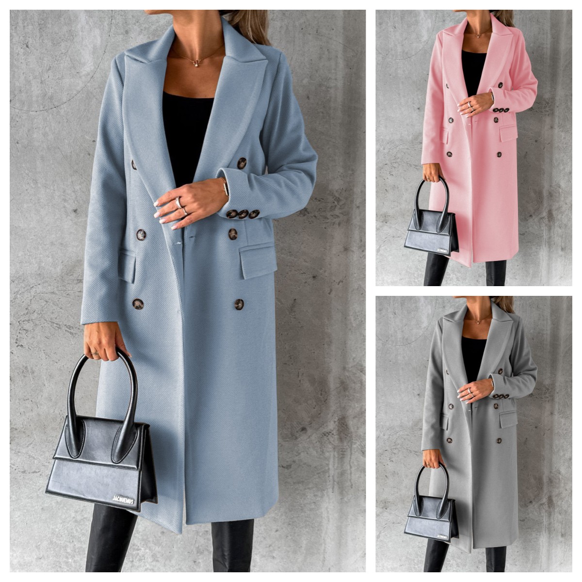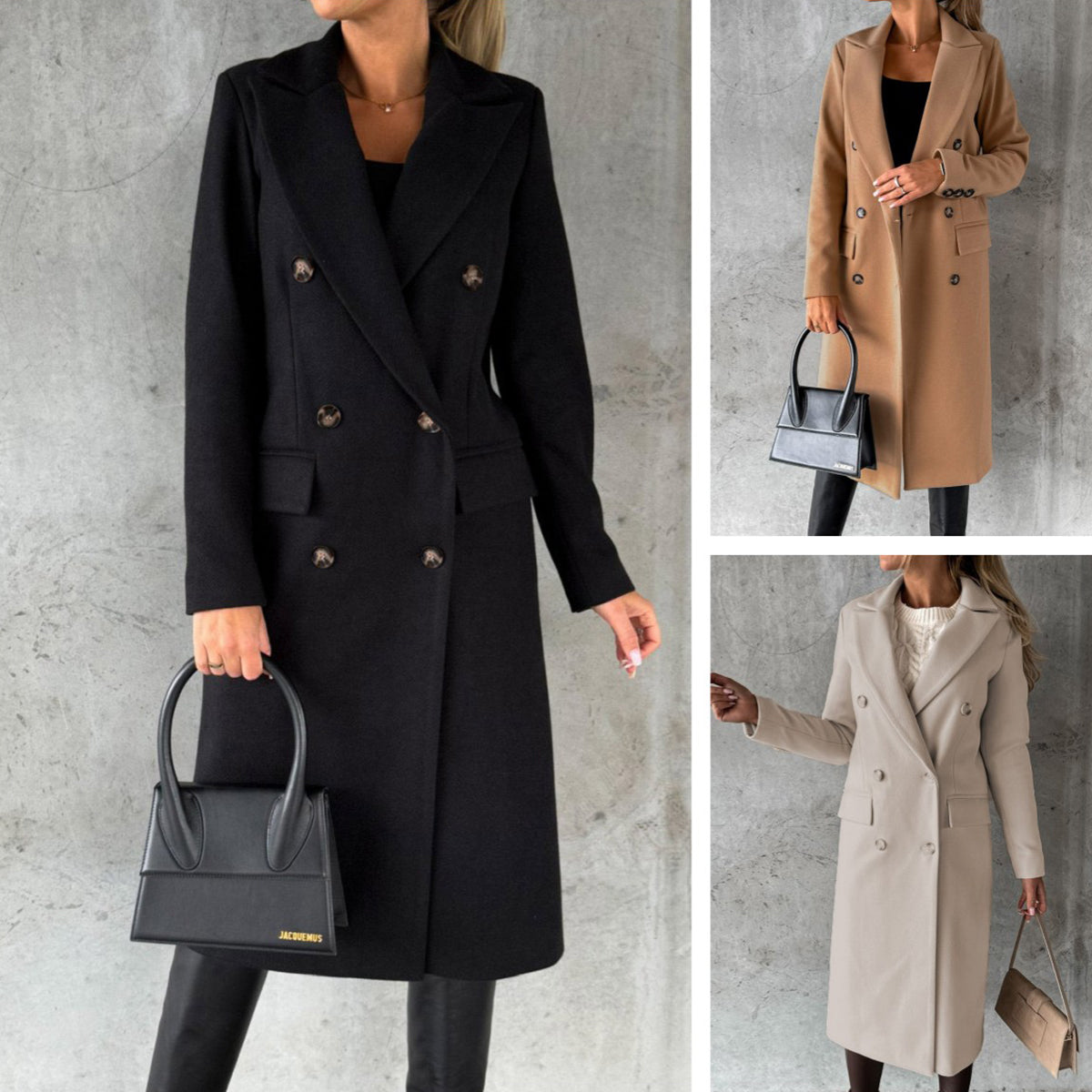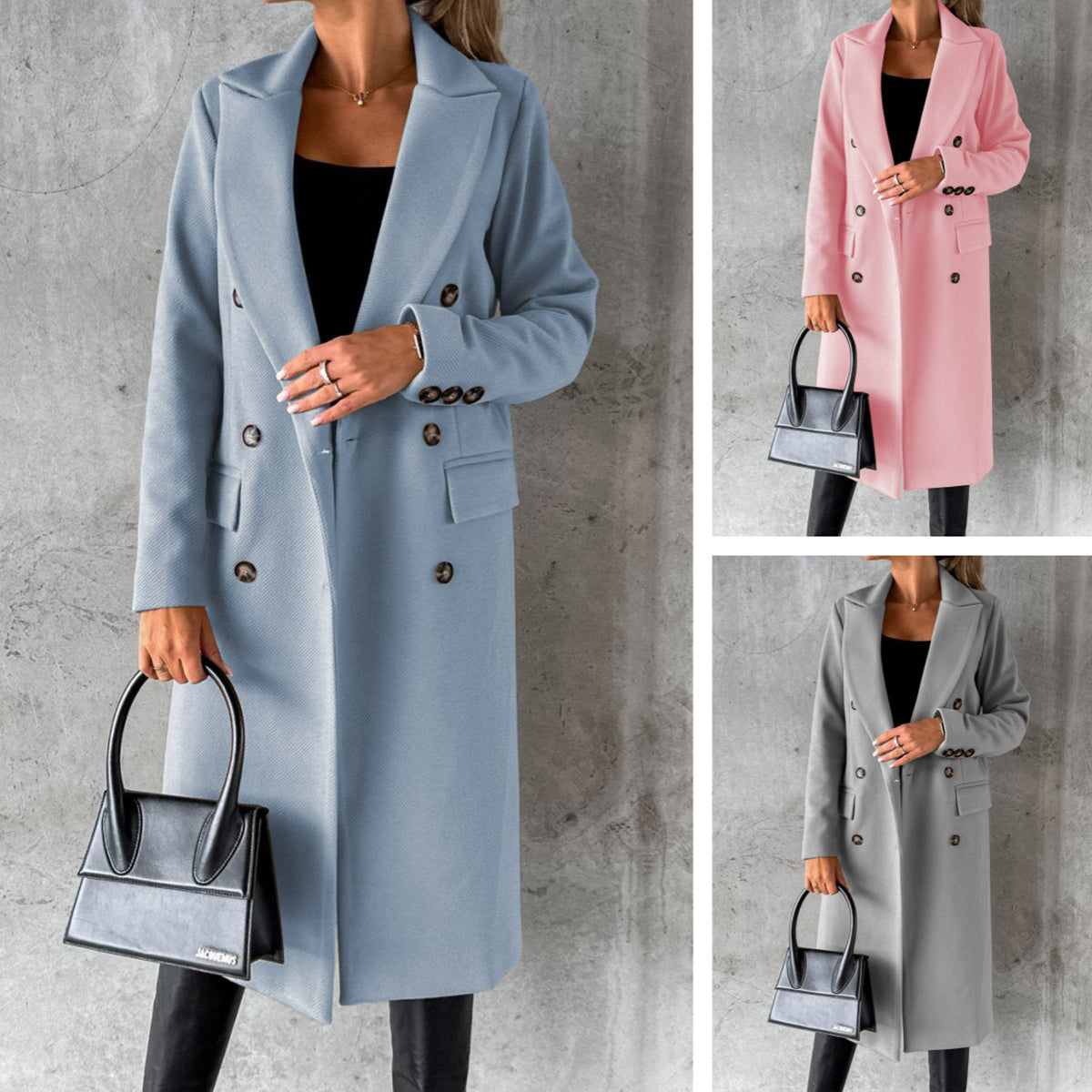 šćS-3XLćJesen i zima, novi ženski jednobojni kaput s dvostrukim kopÄanjem, dugih rukava i preklopa, uski kaput, kaput