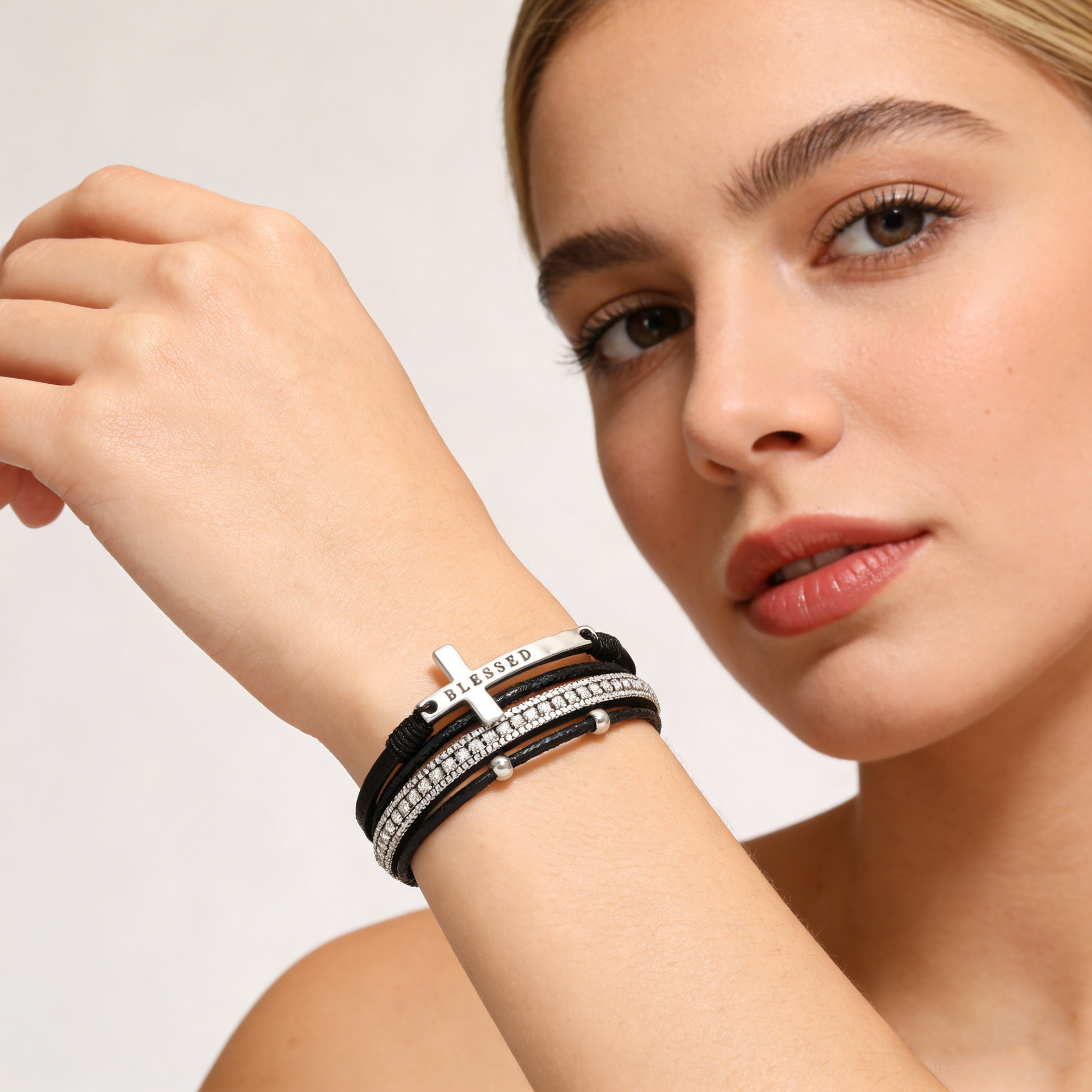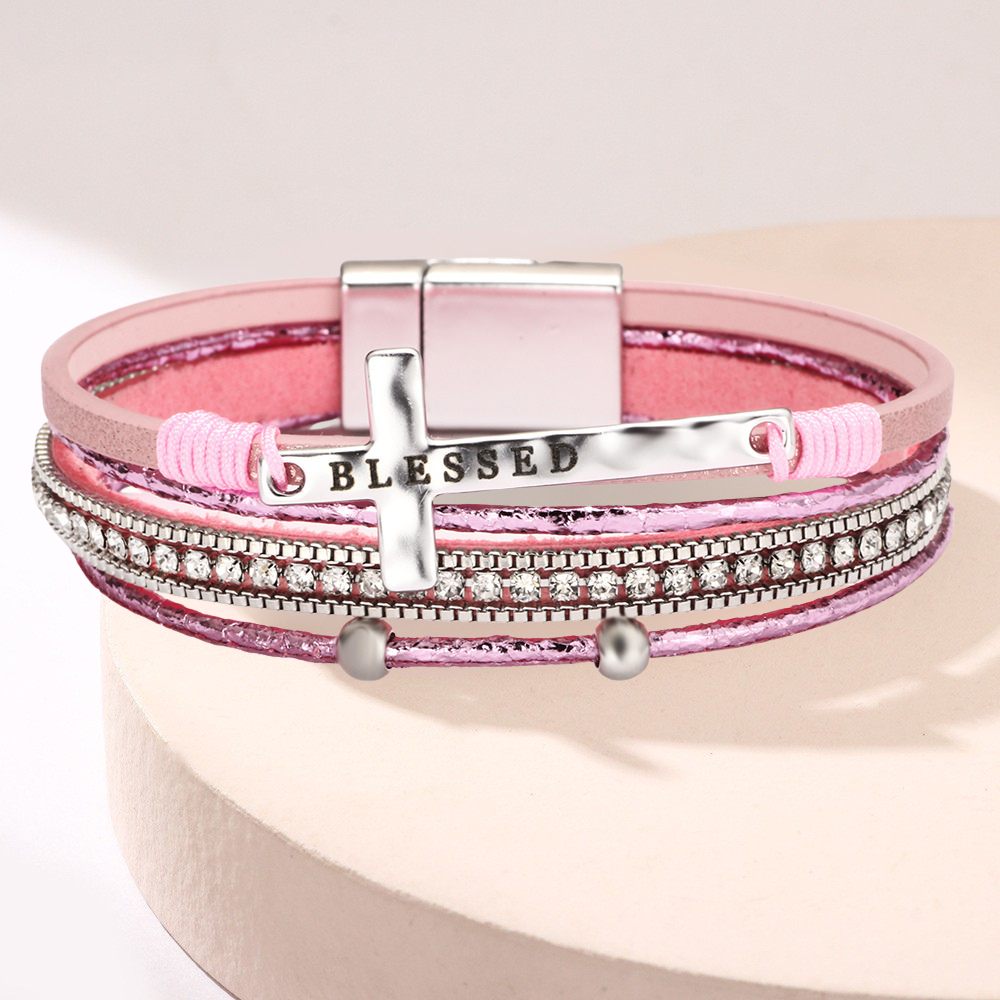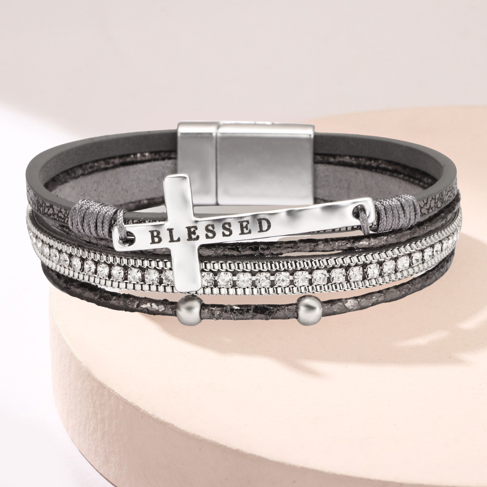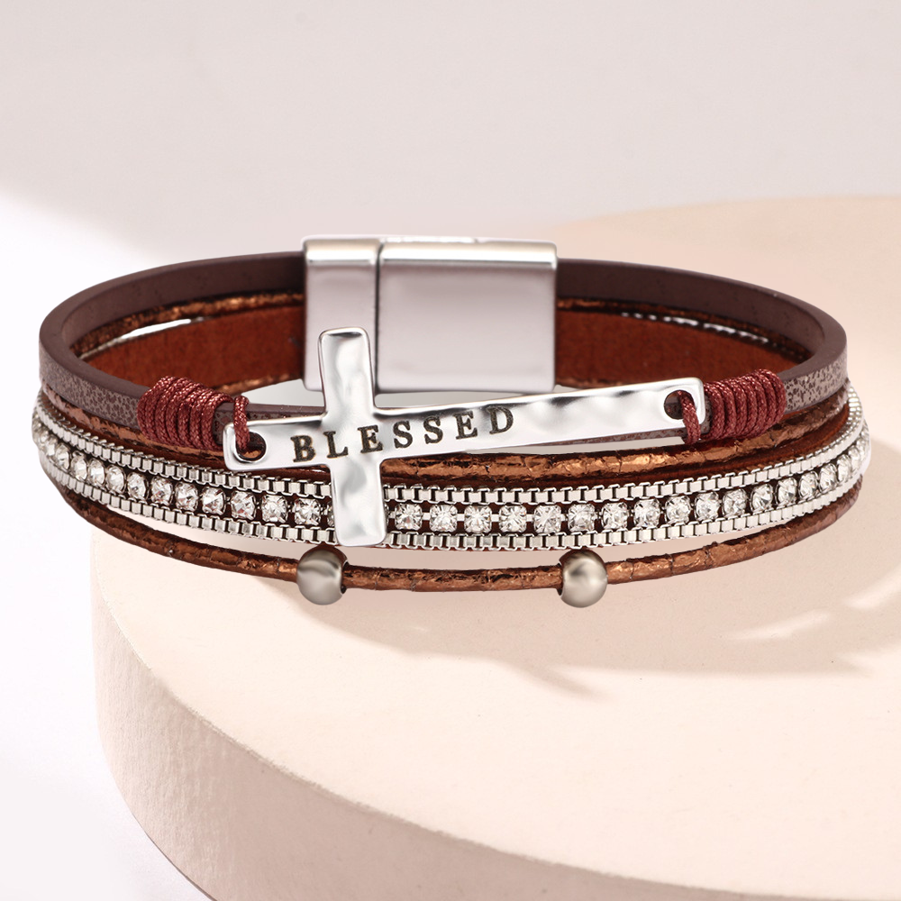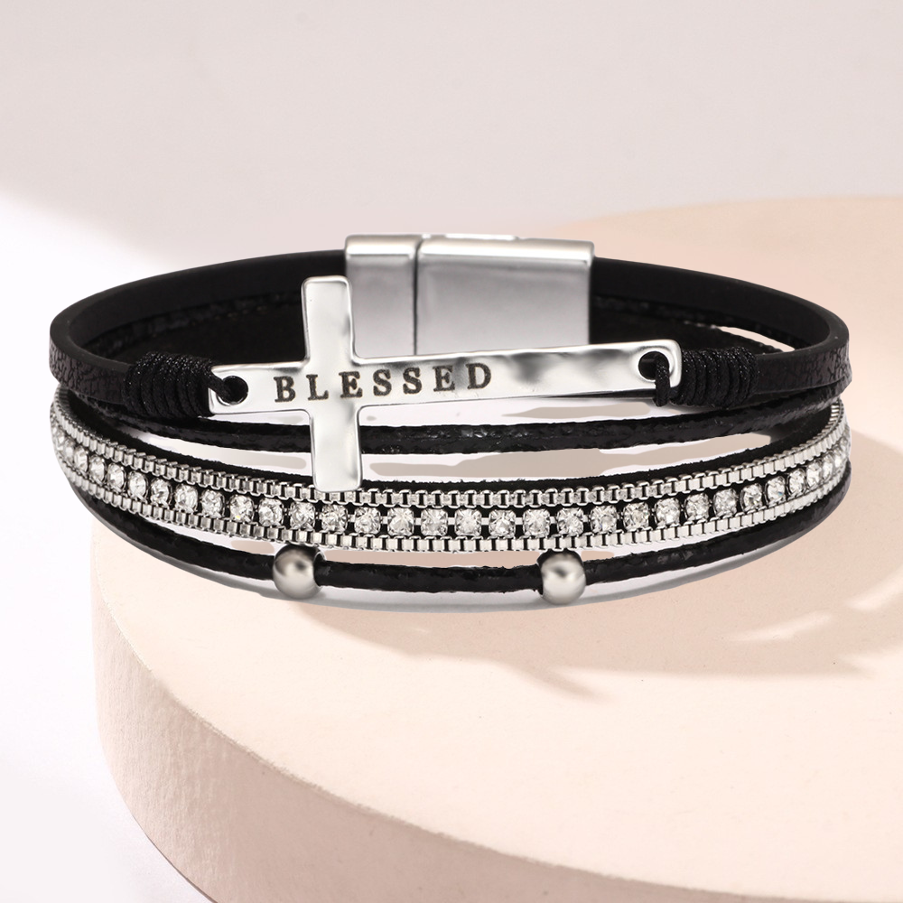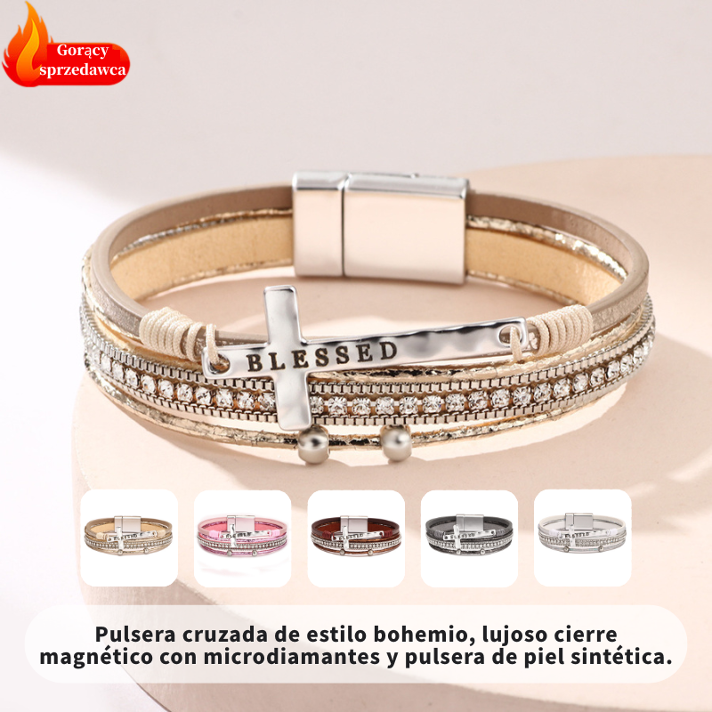 🎁【Kup 1, a 1 dostaniesz gratis】✨Bransoletka z krzyżem w stylu boho, luksusowe zapięcie magnetyczne z mikrodiamentami i bransoletą ze sztucznej skóry.